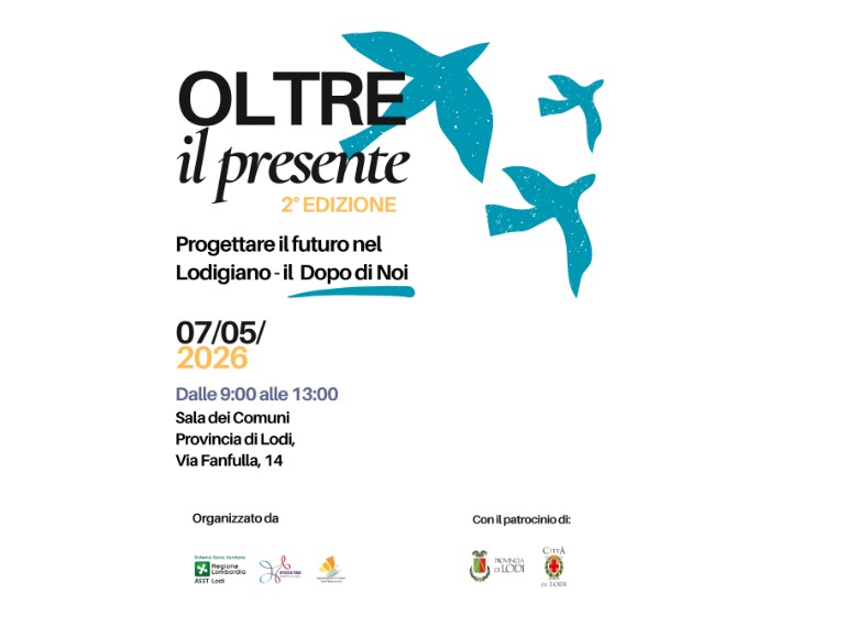 Il 7 maggio 2026 torna “OLTRE il presente 2° edizione. Progettare il futuro nel Lodigiano - il Dopo di Noi", un appuntamento dedicato al tema del Dopo di Noi, con l’obiettivo di costruire insieme percorsi concreti di autonomia, inclusione e qualità della vita per le persone con disabilità nel territorio lodigiano.