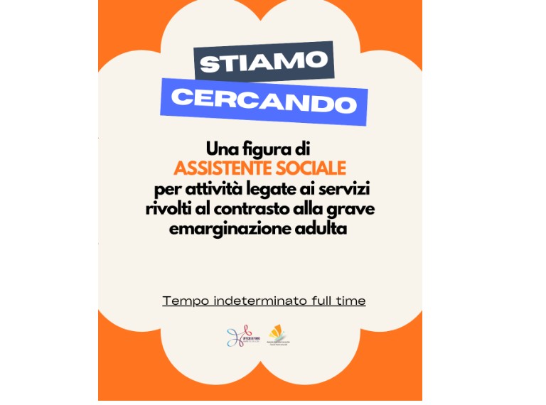 n. 1 posto di Assistente Sociale da impiegare con contratto di lavoro subordinato a tempo indeterminato Full Time, per attività legate ai servizi volti al contrasto della grave marginalità adulta (persone senza dimora).